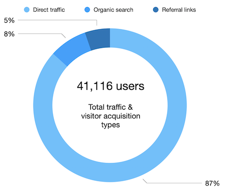 - Direct traffic: 35,657 users typed the website address into the URI bar or clicked on a link to the Knowledge Base.