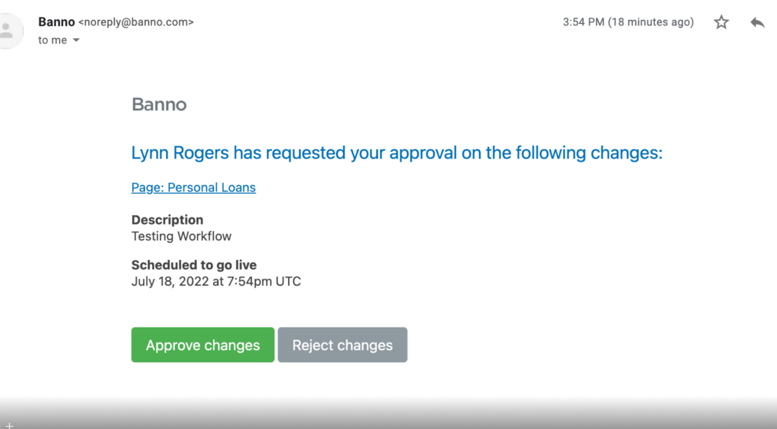 • The approver MUST preview the page by clicking on the link via the email and they must also Approve Changes by clicking the button within the email. (if they go to the CMS and publish - it will remain in the pending status)