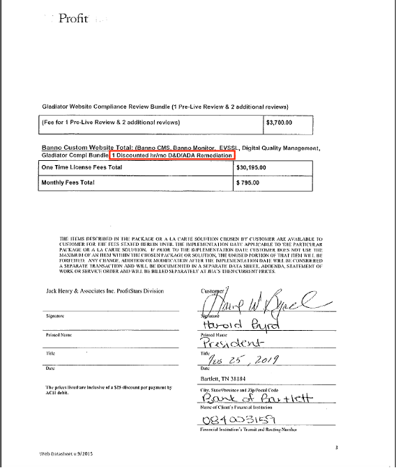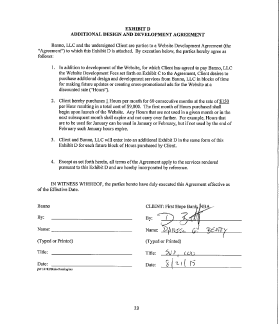 - Older Banno contracts have an "Additional Design and Development Agreement". Typically, the last page of the contract.