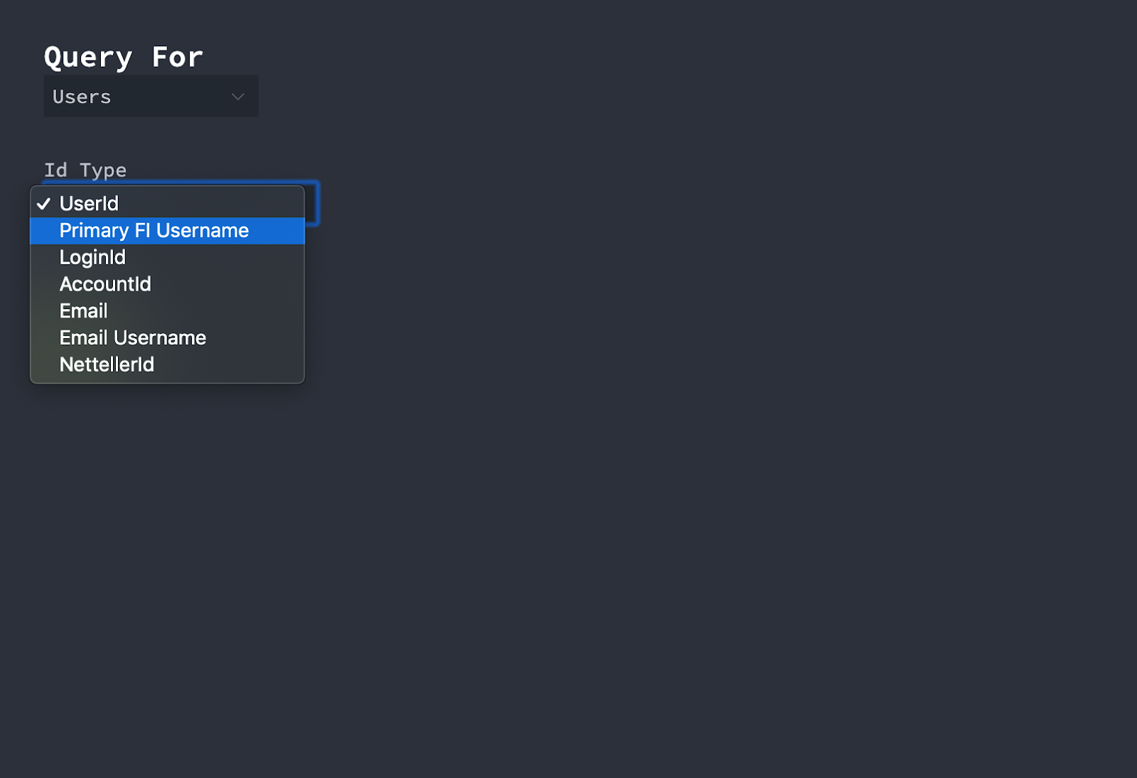 2. Under the Id Type dropdown, select the search criteria you want to use.