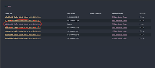 • Note the Active = true/false column at the far right. This indicates if the user_id is currently active.