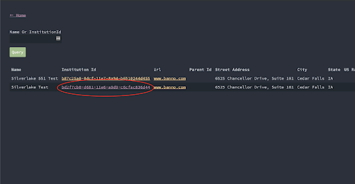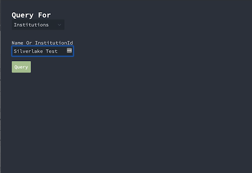 2. Key in the name or institutionId of the institution you want.