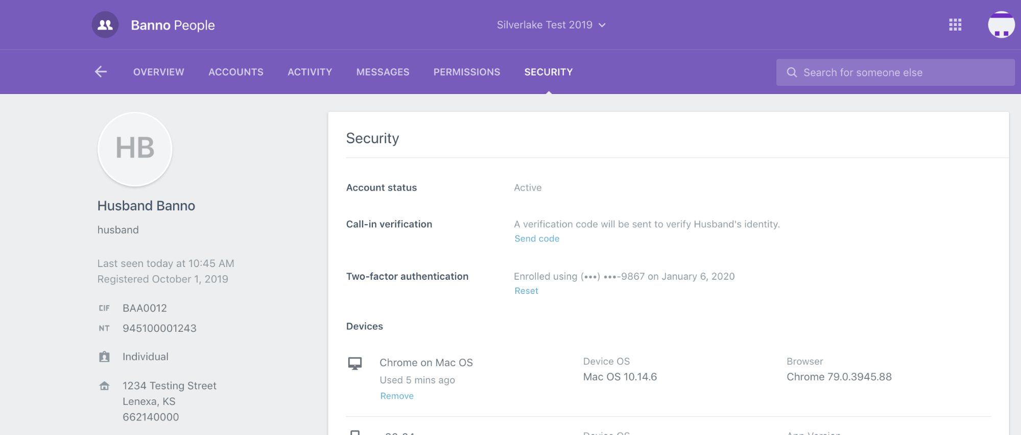 Most commonly the password is what changed. Pull up the user in Banno People, and under Security use the Password reset option to send a link that will allow you to change the password. The link must be sent to the phone or email on the user’s profile, so must users on the Test Creds sheet should have the number/email that allows messages to be sent to a Slack channel where anyone can access it (#auto-authy-codes and #auto-emails).