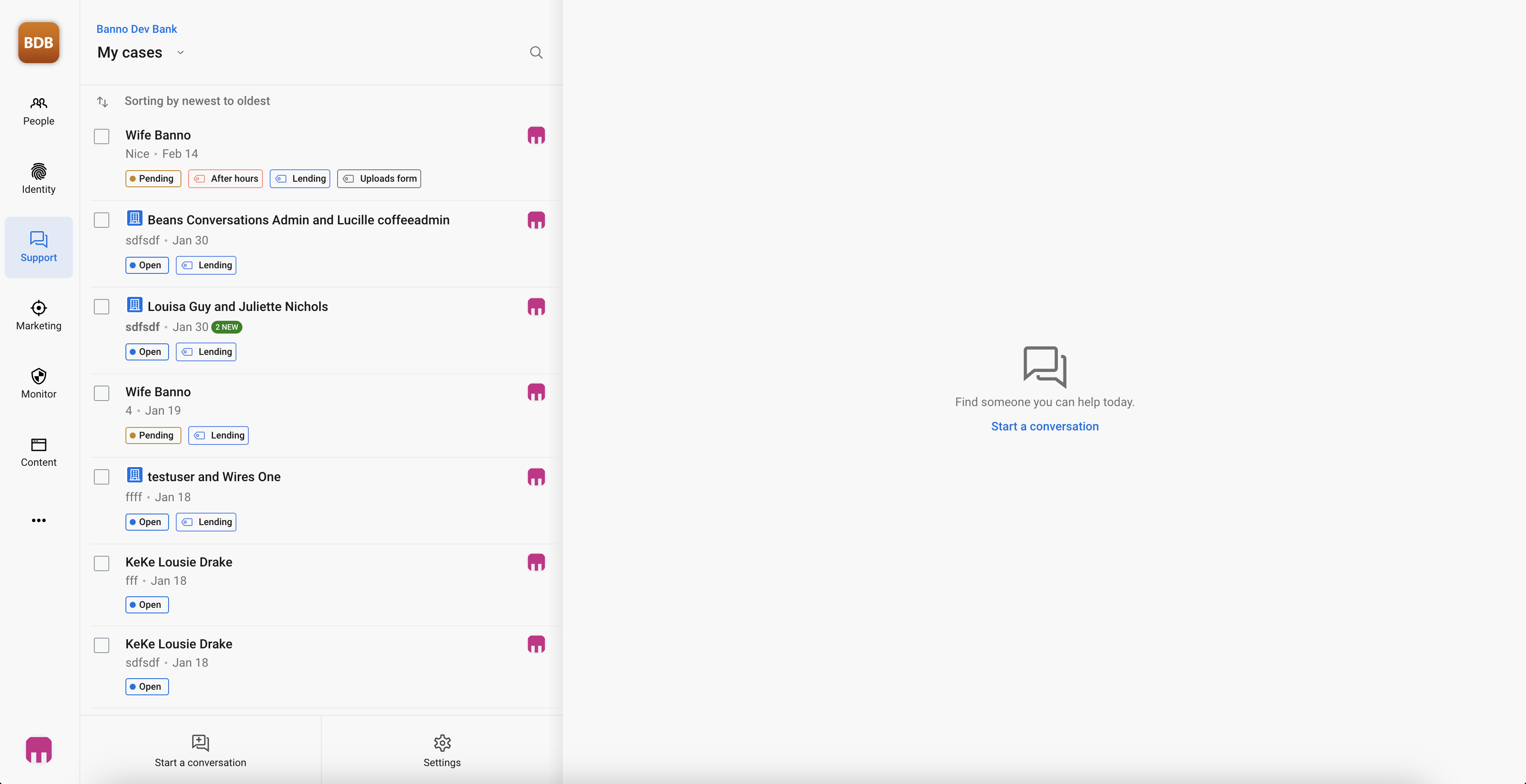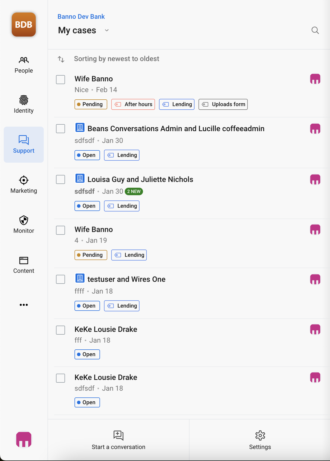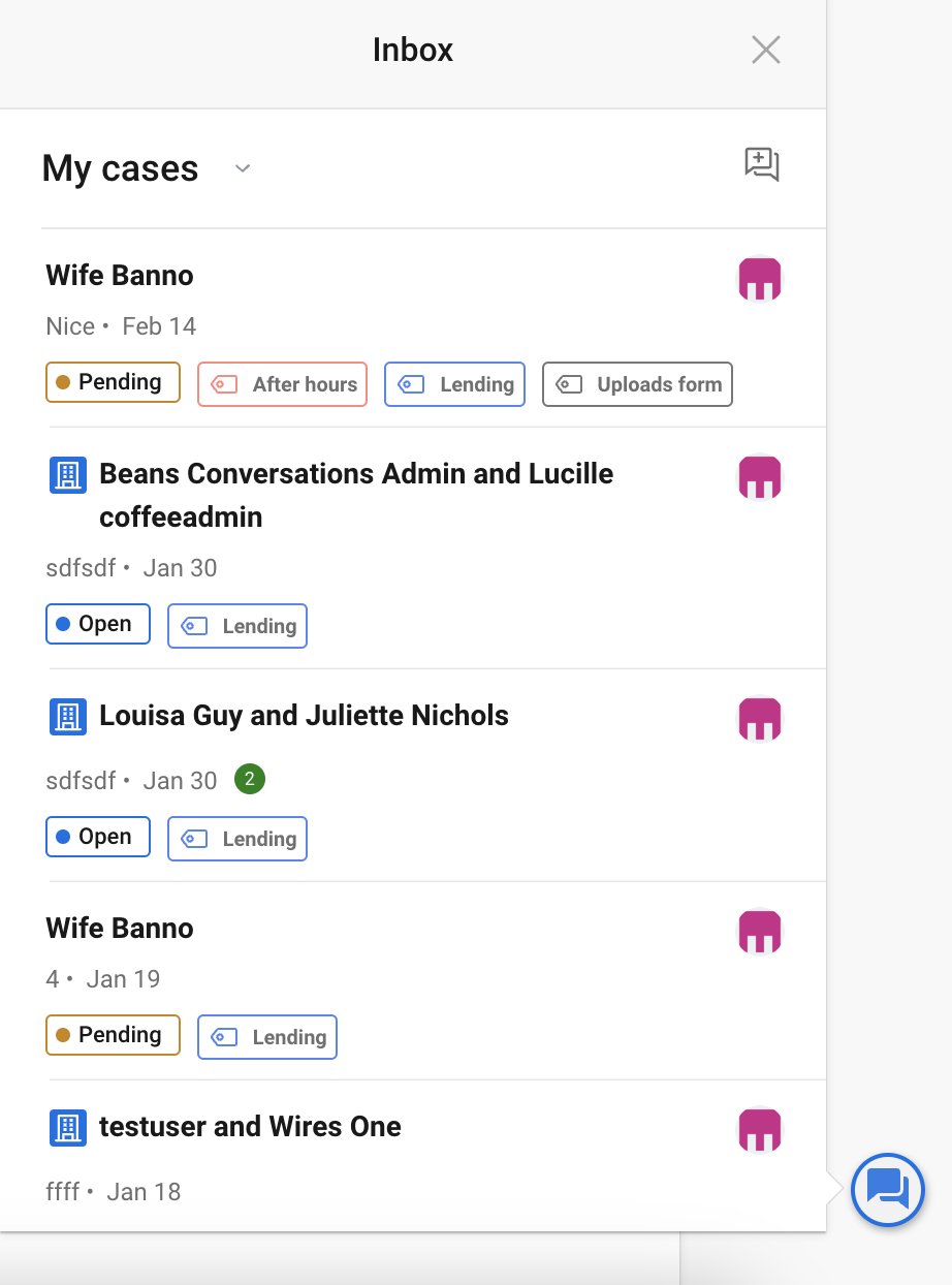 - Receiving new conversations - If a filter is applied, you should not be seeing new conversations in the current case list (created in Banno Online). If the filter matches, it should show with a new status.