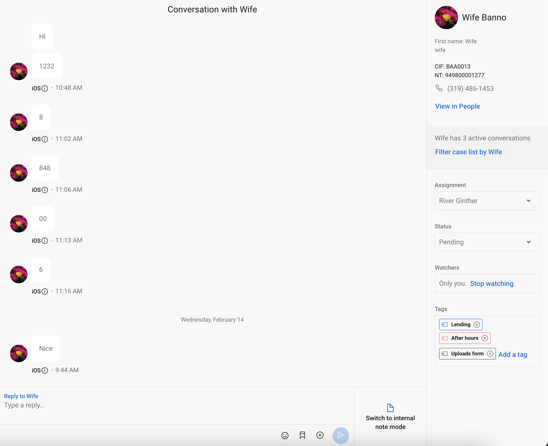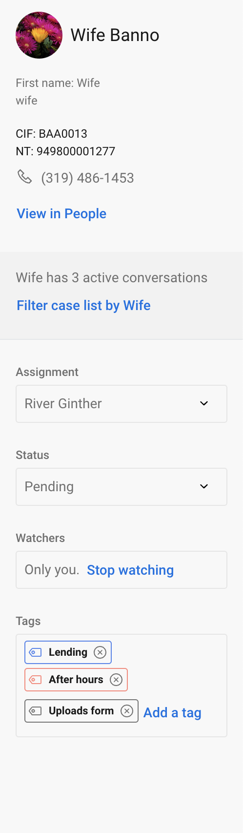 - Watchers - Start watching or stop watching. Automatically watching if you create the conversation from within Support.