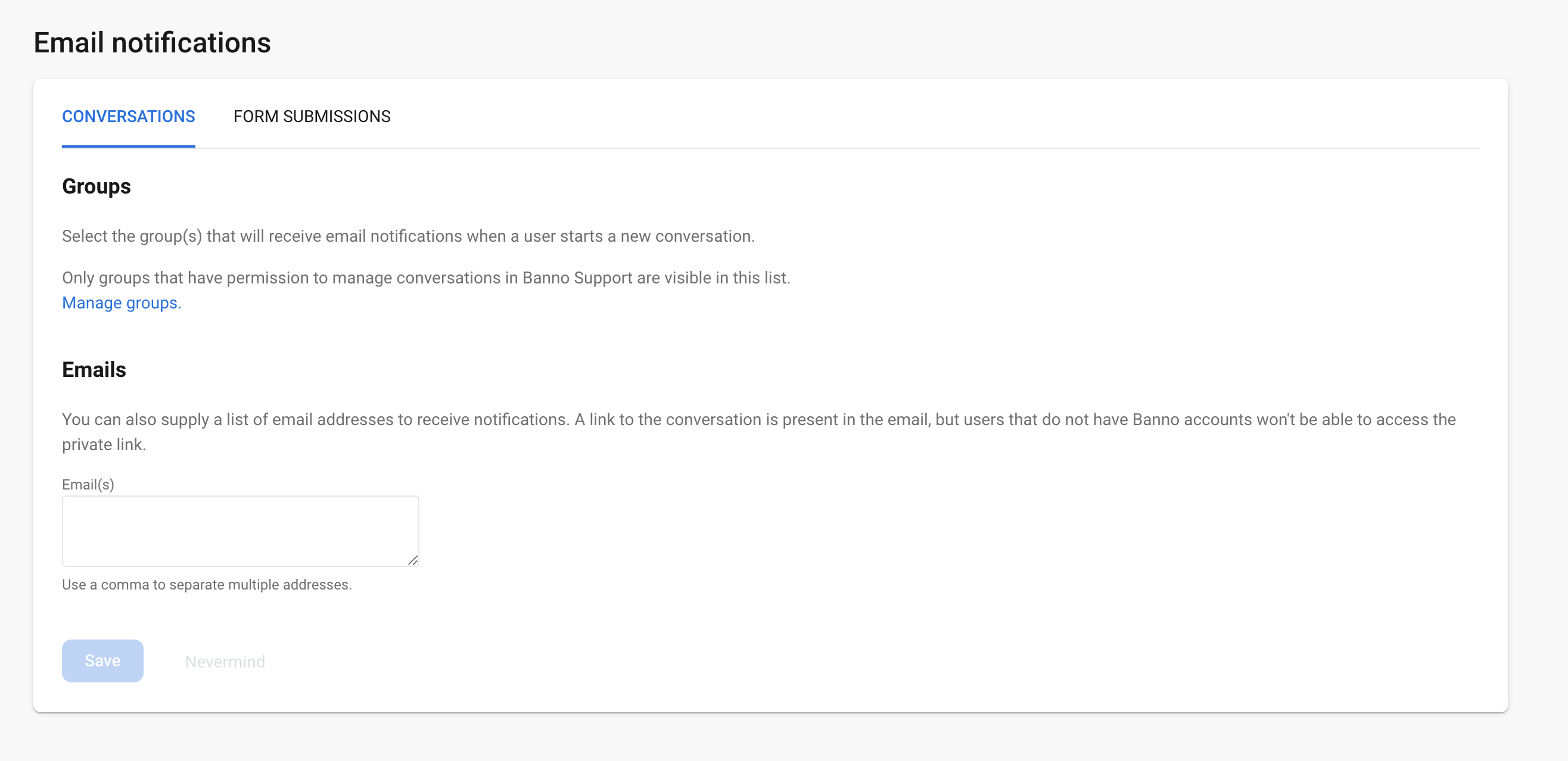 Manage conversationspermission and NOT theManage form submissionspermission in Users & Groups