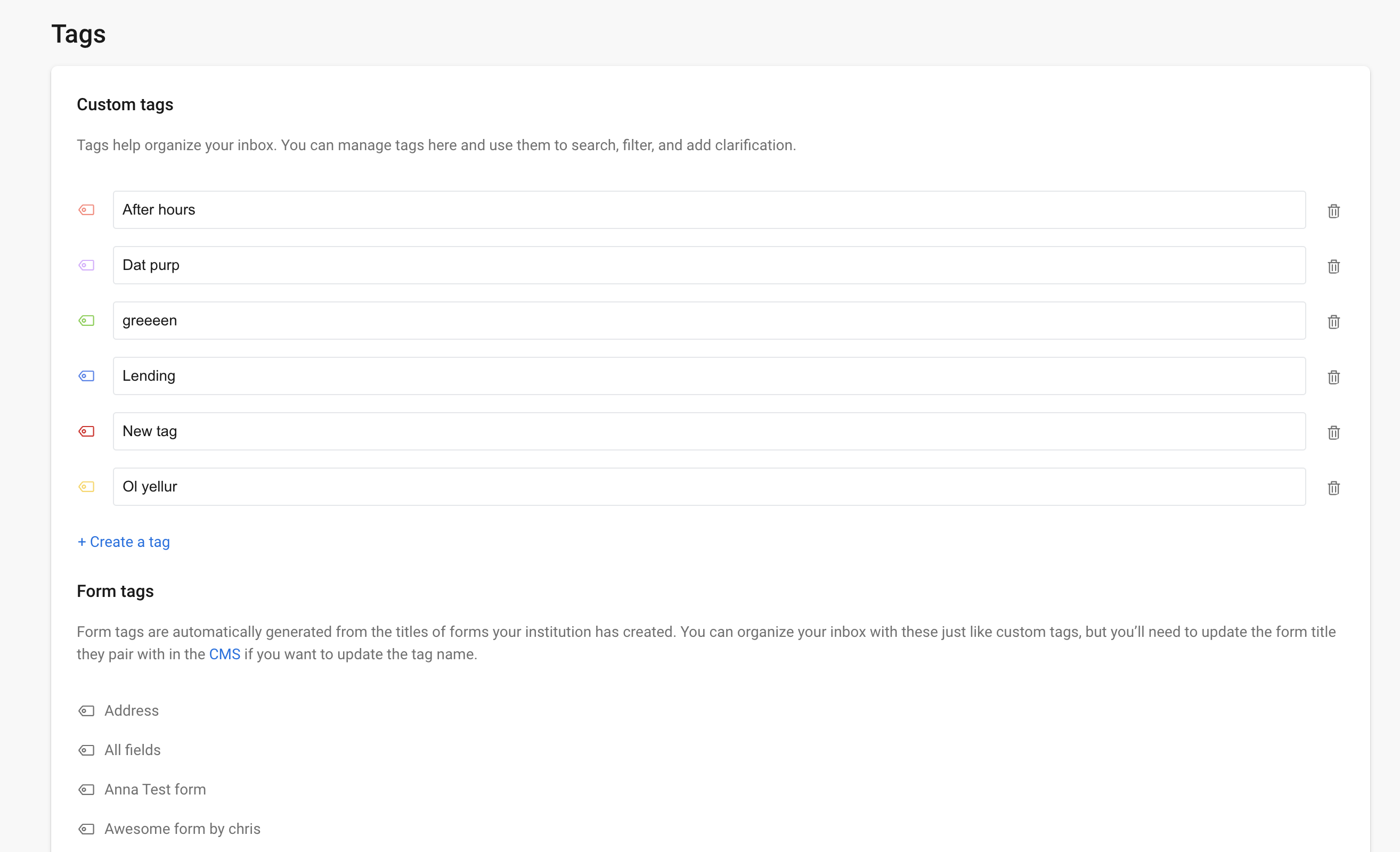 - Unfocusing that input after typing a name (or changing the color) should automatically save the tag